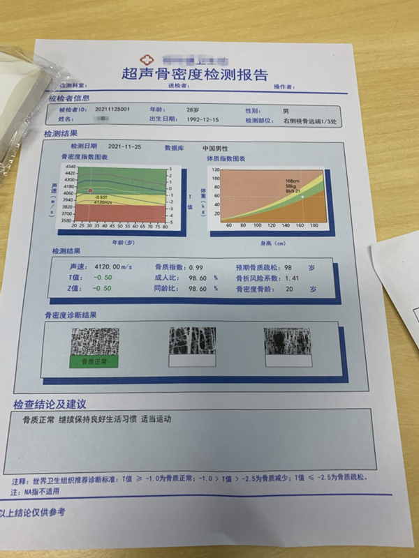 相信做過(guò)骨密度檢測(cè)的人應(yīng)該會(huì)對(duì)“T值”和“Z值”有所印象。一般情況下,骨密度檢測(cè)結(jié)果往往以“圖片+表格”的形式給予反饋:“圖片”直觀展示的是被檢者的骨密度數(shù)值位于中國(guó)男(女)性骨密度參照曲線圖的具體位置;“表格”直接列出T值和Z值的數(shù)值。